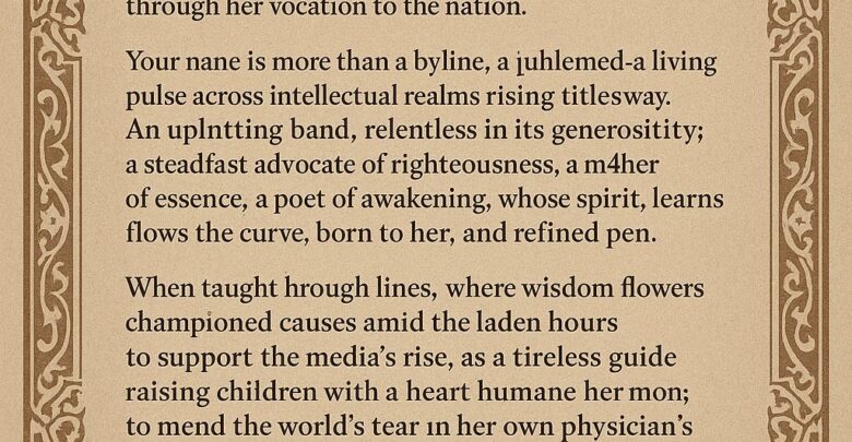 فيا وسيلة الأمل في زمن الضوضاء، ويا أنشودة الوفاء في ليلٍ طال، إنكِ لستِ مجرد اسمٍ يُكتب، بل مدرسةٌ من الإلهام، تستحق أن تُدرس، وتُروى، وتُخلّد.