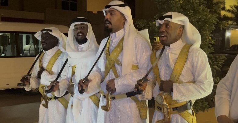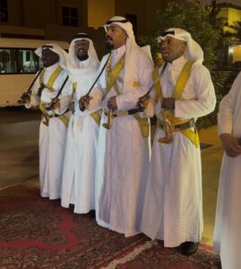 وتم استقبال فريق مشروع “كن سفيرا” بعد عودتهم من بريطانيا التي أمضوا فيه ستة شهور لتعليم اللغة الإنكليزية بالعرضة النجدية وفقرة ترحيبية أسعدت الجميع. هذا وقد رحب عريف الحفل “طارق با مسق” بالجميع في ليلة من ليالي الفخر والعطاء موضحا أن مشروع “كن سفيرا” ليس برنامجا للغة الإنكليزية فقط، بل هو حاملا للقيم والأخلاق والتعامل الجيد والدمج في المجتمعات الأخرى.