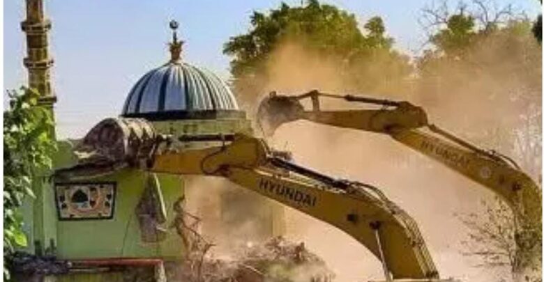 لقد كان استهداف الهياكل الدينية قضية مثيرة للجدل بشكل خاص. وقد وثقت العديد من التقارير الصادرة عن منظمات حقوق الإنسان ووسائل الإعلام حالات تم فيها إلحاق أضرار أو تدمير كامل بمساجد، بعضها يعود تاريخه إلى قرون. على سبيل المثال، في ولاية ماديا براديش، أثرت عمليات الهدم في خارغون بعد الاشتباكات الطائفية في أبريل 2022 بشكل غير متناسب على ممتلكات المسلمين، بما في ذلك المنازل والمتاجر. وبالمثل، في ولاية أوتار براديش، استخدمت حكومة الولاية بقيادة رئيس الوزراء يوغي أديتياناث الجرافات بشكل متكرر ضد الأفراد المتهمين بجرائم مختلفة، وكان عدد كبير من هذه الإجراءات يؤثر على الممتلكات التي يملكها المسلمون. وقد أفادت تقارير محلية ودولية عن أن أكثر من 80% من عمليات الهدم التي تمت في هذه الولايات منذ عام 2020 استهدفت مناطق ذات غالبية مسلمة، حتى لو كانت المخالفات المزعومة منتشرة على نطاق أوسع.