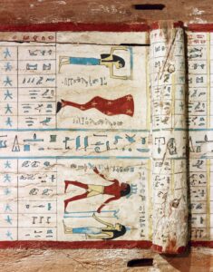 - جزء من مخطوطة مصرية فلكية تاريخية – لوحة مرسومة تصور علامات نجوم ونجوم التابعية (decan)، تُستخدم لتوضيح الطقوس والمعرفة الفلكية في مصر القديمة .