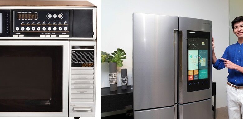 كانت سامسونج من أوائل الشركات الرائدة في مفهوم “الأجهزة المزودة بشاشات”، حيث قدّمت رؤية مستقبلية للبيوت المتصلة. ففي عام 1982، كشفت الشركة عن ميكروويف متعدد الاستخدامات مزوّد بشاشة، أتاح للمستخدمين الاطلاع على تعليمات الطهي، ومشاهدة التلفزيون، وحتى مراقبة مداخل المنزل من خلال وظيفة الكاميرا الأمنية. وفي ما بعد، وسّعت سامسونج دور الشاشة ليشمل الثلاجات، محوّلة إياها من مجرد وحدات للتخزين إلى مركز لحياة العائلة اليومية.