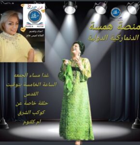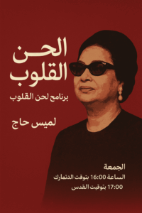 في سهرة خاصة عبر برنامج لحن القلوب على المنصة الدولية همسة نت، تصحبكم الفنانة لميس حاج في رحلة زمنية ماتعة، تعيشون خلالها ساعة كاملة مع إبداع سيدة الشرق أم كلثوم، وأسرار حضورها الذي لا يغيب.