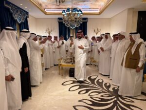 وبدوره قدم المحتفى به الدكتور حسن بصفر شكره وثنائه الجزيل للمضيف الأستاذ فهد المؤذن ولكافّة الحضور مثمنا” لهم هذه المبادرة واللفتة التكريمية وسائلا” الله في علاه أن يحفظهم ويكرمهم من واسع فضله .. وتلا ذلك مأدبة العشاء الفاخر والتي أعقبها الإحتفال بذكرى اليوم الوطني المجيد والذي سيكون بعد أيام قلائل بمشيئة الله وشارك بعدها الجميع في العرضة السعودية بكل حماس وعزيمة وهمة معبرين عن فرحتهم بهذه الذكرى الخالدة والغالية على نفوسنا جميعا”