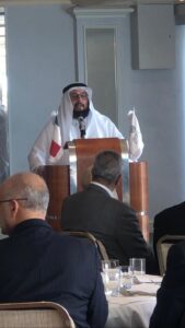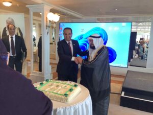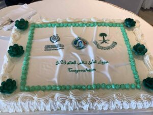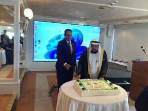 وفي لفتة وطنية جميلة، فاجأ معالي الدكتور عبد العزيز سرحان الحضور بإعداد تورتة خاصة احتفاءً بصعود المنتخب السعودي لكرة القدم إلى نهائيات كأس العالم 2026، حيث شاركه الملحق العسكري السعودي في قص شريطها وسط أجواء من البهجة والتهنئة من جميع الحضور.