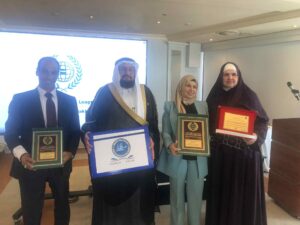 كما قام معالي الدكتور سرحان، وفي ختام الحفل، بلفتة كريمة تعبّر عن روح الوفاء والتقدير، بإهداء درع ووسام رابطة العالم الإسلامي لأعضاء منظمة همسة سماء الثقافة الدولية، تقديرًا لجهودهم في نشر ثقافة المحبة والسلام وتعزيز الحوار الحضاري بين الشعوب.