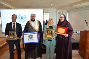 واختُتم الحفل بتسليم شهادة الدكتوراه الفخرية للدكتور عبد العزيز سرحان، ودرع الشكر والتقدير للدكتورة حياة شهاب، وسط تصفيق الحاضرين، مع التأكيد على استمرار المنظمة في تعزيز الحوار الحضاري وتمكين الكلمة الهادفة كجسر للتواصل بين الشعوب، مكرسة شعارها: