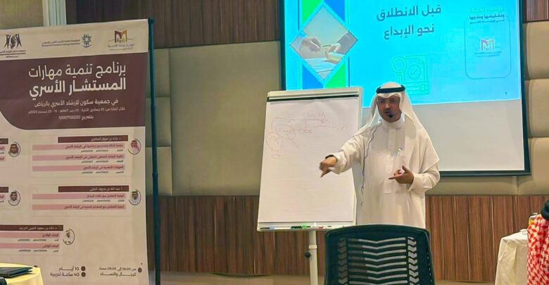 «دراسة الحالة وتشخيصها وعلاجها في الإرشاد الأسري»، استعرض خلالها الأسس العلمية لدراسة الحالات الأسرية، ومنهجيات التشخيص الدقيق، وأساليب التدخل والعلاج الإرشادي، مدعّمًا ذلك بأمثلة وتطبيقات عملية تعزز جاهزية المستشارين للممارسة المهنية.