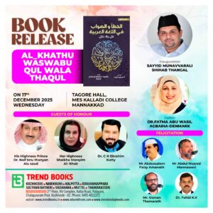 شهدت كلية MES KALLADI COLLEGEاحتفالًا مهيبًا بحضور المئات من محبي اللغة العربية، لإطلاق الطبعة الثانية من كتاب «الخطأ والصواب – قل ولا تقل»، أحد أهم المراجع لتصحيح الأخطاء الشائعة في اللغة العربية.