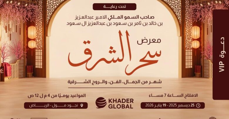 برعاية كريمة من صاحب السمو الملكي الأمير عبد العزيز بن خالد بن ثامر بن سعود آل سعود، ينطلق “معرض سحر الشرق” في مول نجود بالرياض، وذلك بدءاً من اليوم الخميس الموافق 25 /12 / 2025م ولمدة 26 يومًا.