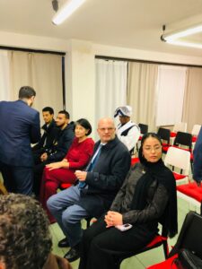وشهدت الفعالية مشاركة مميزة من سعادة الأستاذ طارق الفايز، نائب سمو سفير المملكة العربية السعودية لدى إيطاليا، وسعادة السفيرة إيناس مكاوي، رئيس بعثة جامعة الدول العربية في إيطاليا، إضافة إلى البروفيسور جوليانو لانشوني، الأستاذ بجامعة روما “تري”، وعدد من الأكاديميين والمهتمين بالشأن الثقافي واللغوي.