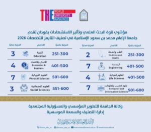 جامعة الإمام محمد بن سعود الإسلامية تسجل تقدمًا في تصنيف التايمز العالمي للتخصصات 2026