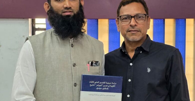 وعنوان الأطروحة : دراسة منهجية للتفسير العلمي للآيات الكونية في تفسير “الجواهر” للشيخ طنطاوي جوهري