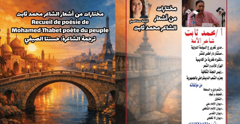 صدر حديثا ديوان مترجم للفرنسية بمعرض القاهرة الدولي للكتاب ٢٠٢٦ لشاعر الأمة محمد ثابت الديوان للمترجمة والشاعرة المغربية حسنتا الصيفي