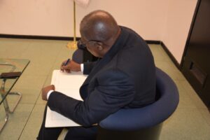 وفي ختام اللقاء، وجّه سعادة سفير جمهورية الكونغو دعوة رسمية لمعالي الدكتور السرحان لزيارة بلاده، كما دوّن كلمة في السجل الذهبي لرابطة العالم الإسلامي، معربًا عن تقديره للدور الذي تقوم به الرابطة على الصعيدين الإنساني والدولي.