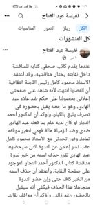 عندما يقدم كاتب صحفي كتابه للمناقشة داخل نقابته يختار مناقشيه، وقد اعتقد الأستاذ محمود كامل رئيس اللجنة الثقافية أن القضايا انتهت لأنه شاهد على صفحتى إعلانى بحصولنا على حكم ضد علاء عبد الهادى، وهو ما جعله يقبل بحضوره في تصرف يليق بالكبار، وأوكد أن الدكتور أحمد النجار لو كان لديه علم بما فعله عبد الهادى ضدى وضد الزميلة هالة فهمي لتغير موقفه تماما، وفور تحدثى مع الأستاذ محمود كامل عقب نشر إعلان عن الندوة التى سيحضرها عبد الهادى تقرر حذف اسمه من خبر ندوة مناقشة كتاب الدكتور أحمد النجار الموجود على صفحة النقابة، وأعتقد أن حذف اسمه من الخبر كاف حتى وإن حضر الندوة متجاهلا هذا الحذف فيكفي أنه سيقبل بالحضور رغم ذلك.. وأؤكد أن مواقف نقابتي المحترمة تليق بها وأن محاولات إظهار تخليها عن أبنائها غير مجدية، خاصة وأن ما تعرضنا له أنا والزميلة Hala Fahmy كان بسبب نشر عن جمعية عمومية غير عادية لاتحاد الكتاب في جريدتينا، وأن بيان اللجنة الثقافية في هذا الشأن كان شفاء لصدورنا وإرساء لقيم مهنية وحقوق أساسية للصحفيين