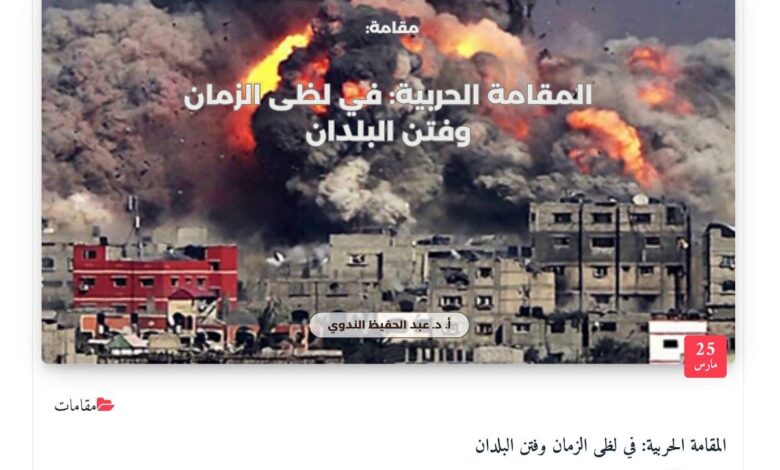 حَرْبٌ تُدَارُ بَيْنَ فُرْسٍ وَغَاصِبٍ، وَالنَّارُ تَحْرِقُ مَنْ نَأَى عَنِ الفِتَن