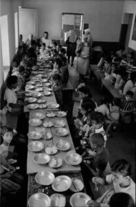 الطباخون كانوا أنبياء للسعادة، ورسلاً للأمان والحب، يقفون مبتسمين وضاحكين على أبواب المطعم، يضبطون الصفوف ويحاولون تهدئة ثورة بطون الطوابير، من ينسى ملائكة المخيم هؤلاء بزيهم الأبيض؟ أبو صابر القطامي واسحق زوبعة وأبو صالح خداش: جميل عثمان وأبو إسماعيل خروب، وعبد الحفيظ أبو نضال وأبو صبحي خرمة وأبوفتحي صباح وجودت الزق وأبو محمود العيشاوي وأحمد مسعود صافي ونوال عرابي؟ طباخو المطعم هؤلاء كانوا أعمامنا وآباءنا وأخوالنا، شخصيًا كان لي عم منهم، هو عمي إبراهيم (أبو صالح)، كان عمي إبراهيم مسؤولاً وحيدًا عن غرفةٍ ملحقةٍ بالمطعم، هذه الغرفة أسميتها فيما بعد بيت روحي، وبهجة معدتي، هناك كان عمي الصموت باستمرار، يجلس بلباسه الأبيض، قرب طنجرة (توتيا) ضخمة، تفيض بكرات اللحم اللذيذة (الكبّة)، من المفروض أن يحصل كل طفل منها على حبتيّ كبة، وكان من الصعب جدًا إقناع معدتي المتطلبة بأن حبتيّ كبة تكفيانها، كنت ألتهم الحبتين في ثوانٍ خارج غرفة عمي، وأجلس على حجرٍ مراقبًا زملائي التلاميذ وهو يدخلون بانتظام غرفة العم، ويحصلون على حصصهم، كان خيالي يشتغل بشكلٍ شرير، أتذكر أني نظرت إلى نافذة الغرفة وفكرت في إمكانية التسلل من خلالها ليلاً إلى غرفة العم لالتهام حباتٍ أخرى متخلفةٍ أو زائدةٍ أو منسيةٍ هنا وهناك، ثم خطر في بالي أن أطلب من أبي أن يخبر عمي بحاجتي إلى أكثر من حبتين، وفكرت في حلٍ آخر، أن أعرض على أحد الزملاء صفقة يعطيني فيها حصته من كرات اللحم وأعطيه أنا حصتي من صحن البرغل أو الفاصوليا، ومرة فكرت في صفقة أخرى مع تلميذٍ آخر، أن أكتب واجباته البيتية مقابل حصته، أما أخطر الحلول فكان أن أخطف حبة من يد تلميذٍ وأطير بها إلى أزقة المخيم وليحدث بعدها ما يحدث، لم أنفذ أي فكرة من أفكاري هذه، كنت جبانًا أو كنت خجولاً، أو كنت الاثنين معًا، بقيت واقفًا قرب باب غرفة الروح محاولاً أن ألفت انتباه عمي، لوجودي علّه يرمي لي بحبّة.