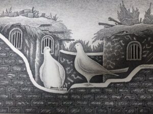 بالرغم مـن كونهـا مجـرد سـن قلـم رفيـع يغمـس في الحـر الأسـود و ينسـاب و يراقـص و يتقاطـع فـوق الـورق الأبيـض، فيعطيـك مـن التأثـرات بعض ما تعطيه لمســات الألــوان أو ملمس الخامــات و السطوح المجسمة، و يشعرك بنكهــة الطبيعة الطازجة ووهج الضوء في حـواره البـري مـع الظـل، بإيقـاع منغـم بـن البـطء و السرعـة، و الهـدوء و الانفعـال، و الرقـة و الخشـونة، و الواقـع و الخيـال.