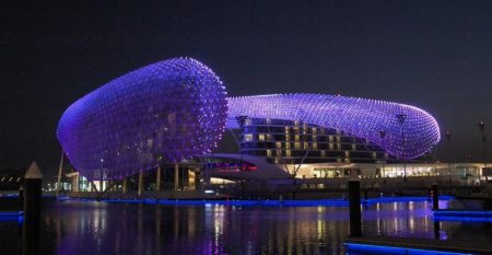 يمثل فندق ياس فايسروي أحد الروائع الهندسية والمعمارية، حيث يقع نصف الفندق فوق سطح الأرض والنصف الأخر يطفو فوق مياه البحر ويرتبط كلاهما بجسر يمر فوق حلبة سباقات الفورمولا، كما يتميز الفندق بتصميم شبكي مصنوع من الفولاذ والزجاج.