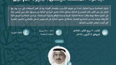 محاضرة بعنوان “جائزة الملك فيصل : “سيرة لم تُرْوَ” يقدمها د السبيل يوم الأحد القادم في مقر المؤسسة