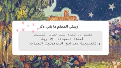 ويبقى المعلم ما بقي الأثر بقلم/ د. قمرة بنت خطاب السبيعي كنتُ وما زلتُ أؤمن أن أخلاق الإنسان لا…