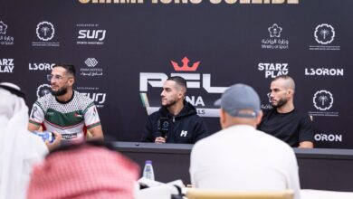 نجوم الفنون القتالية يتحدثون عن استعداداتهم في المؤتمر الصحافي لـ«دوري المقاتلين المحترفين» في الرياض